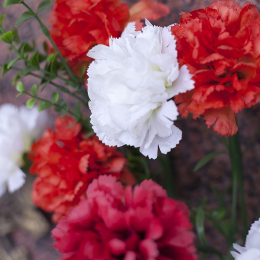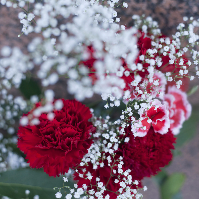 The images depict the flowers adorning the graves in a cemetery.